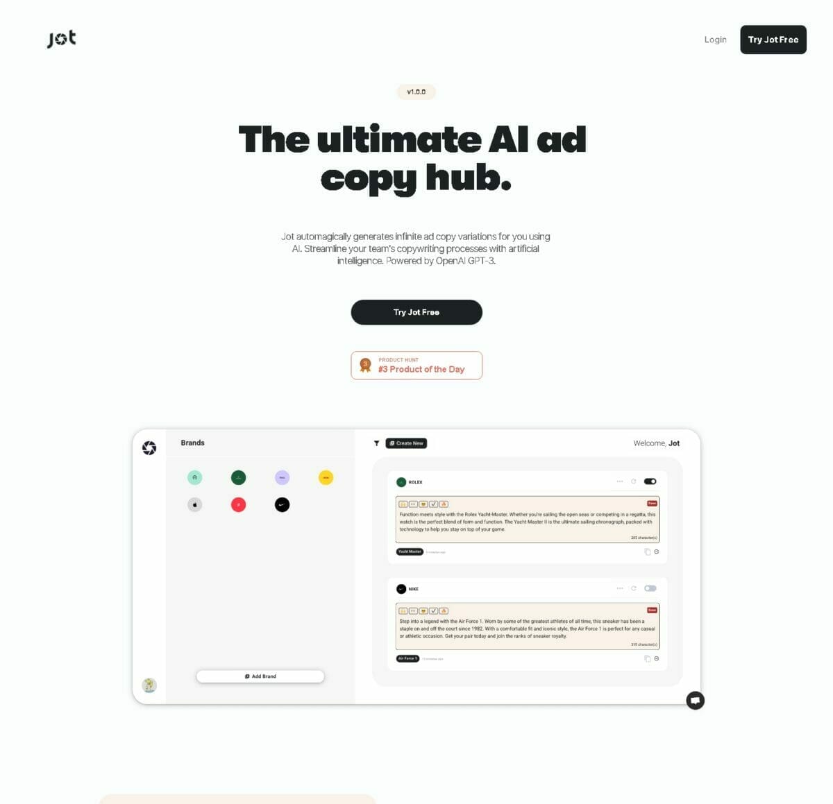 This tool called Jot is a helpful tool that uses AI technology to make copywriting easier for businesses and marketers. It uses a special language model called OpenAIs GPT-3 to create ad copy that sounds like it was written by a human, using just a description of a product. By using Jot, it saves users time and effort when creating marketing content that is catchy and persuasive.nnJot has some key features that are really useful. It can generate ad copy that sounds human-like by using the powerful OpenAIs GPT-3 language model. The tool also has a user-friendly dashboard where you can manage your brand links, edit and update your copy cards, and even filter brands. There's also a character counter that helps you keep track of how many characters you've used, so you don't exceed any platform restrictions. You can even add expressive emojis to your copy for extra impact. And when you're done, you can easily copy the generated content to your clipboard and use it in your marketing channels.nnThere are two plans to choose from – Basic and Pro. The Pro plan gives you unlimited copy cards and brands to manage. And to top it off, you can try out Jot for free with a 7-day trial to see if it's the right tool for you.nnHere are some examples of how this tool can be used: Businesses can quickly and efficiently generate compelling ad copy for their marketing campaigns. Marketers can streamline their copywriting processes and save time when creating persuasive content. Advertising agencies can generate high-quality ad copy for multiple clients and campaigns.nnJot is the perfect solution for businesses and marketers who want to make their copywriting processes easier and create engaging ad copy effortlessly. With its AI-powered features, user-friendly dashboard, and handy tools, Jot empowers users to make their marketing campaigns better and get better results with captivating and persuasive content.nnAI social media assistant tools offer great benefits like content creation, scheduling, and analytics. These tools can be used for many things, including: AI algorithms can create interesting text, image, and video content that is customized for specific audiences. AI assistants can help you schedule and publish your social media posts automatically at the best times. AI-powered tools can analyze social media metrics to give you insights and suggestions for improving engagement and increasing your reach.